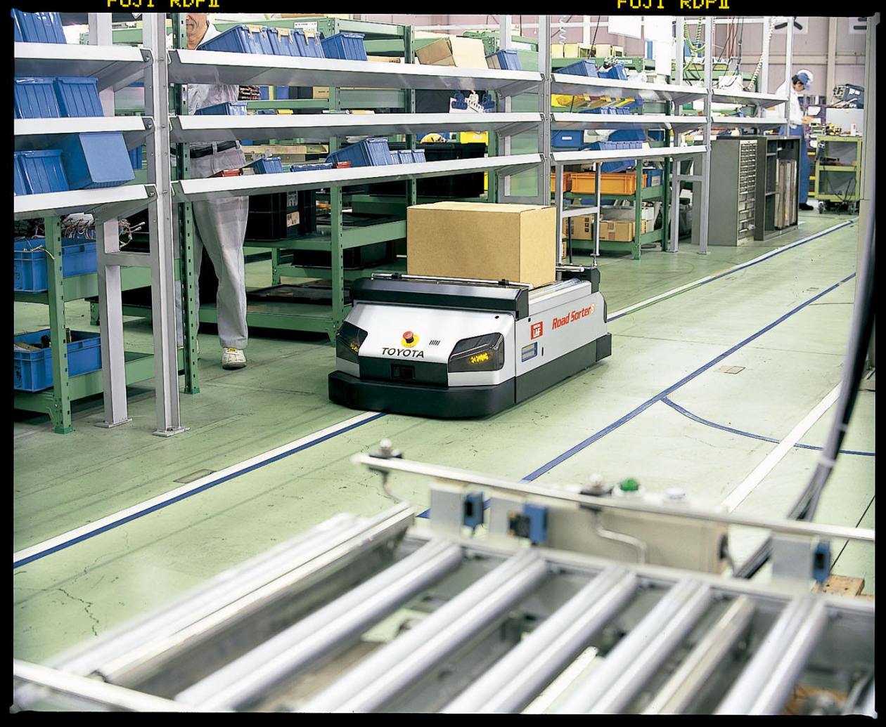 AGVとは、「Automated Guided Vehicle」の略で、無人搬送車のことです。磁気やレーザーで自車の位置を確認しながら、目的地まで積載物を搬送する物流機器です。